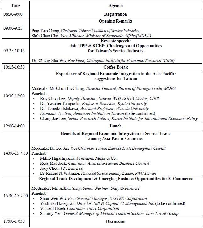 Organizer: Taiwan Coalition of Service Industries, Chung-Hua Institute for Economic Research