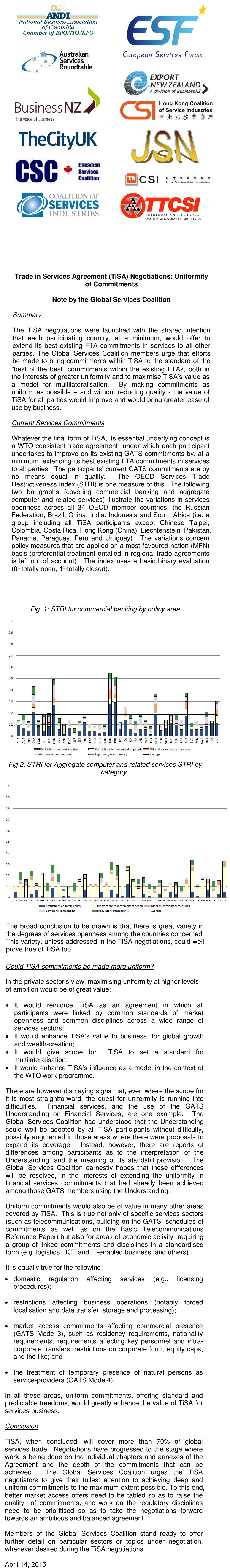 The Global Services Coalition Statement : Trade in Services Agreement (TiSA) negotiations: Uniformity of Commitment