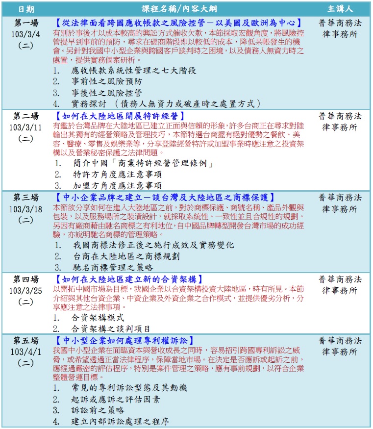 [最新活動] 跨境商務法律事務實務講座2014-02-05