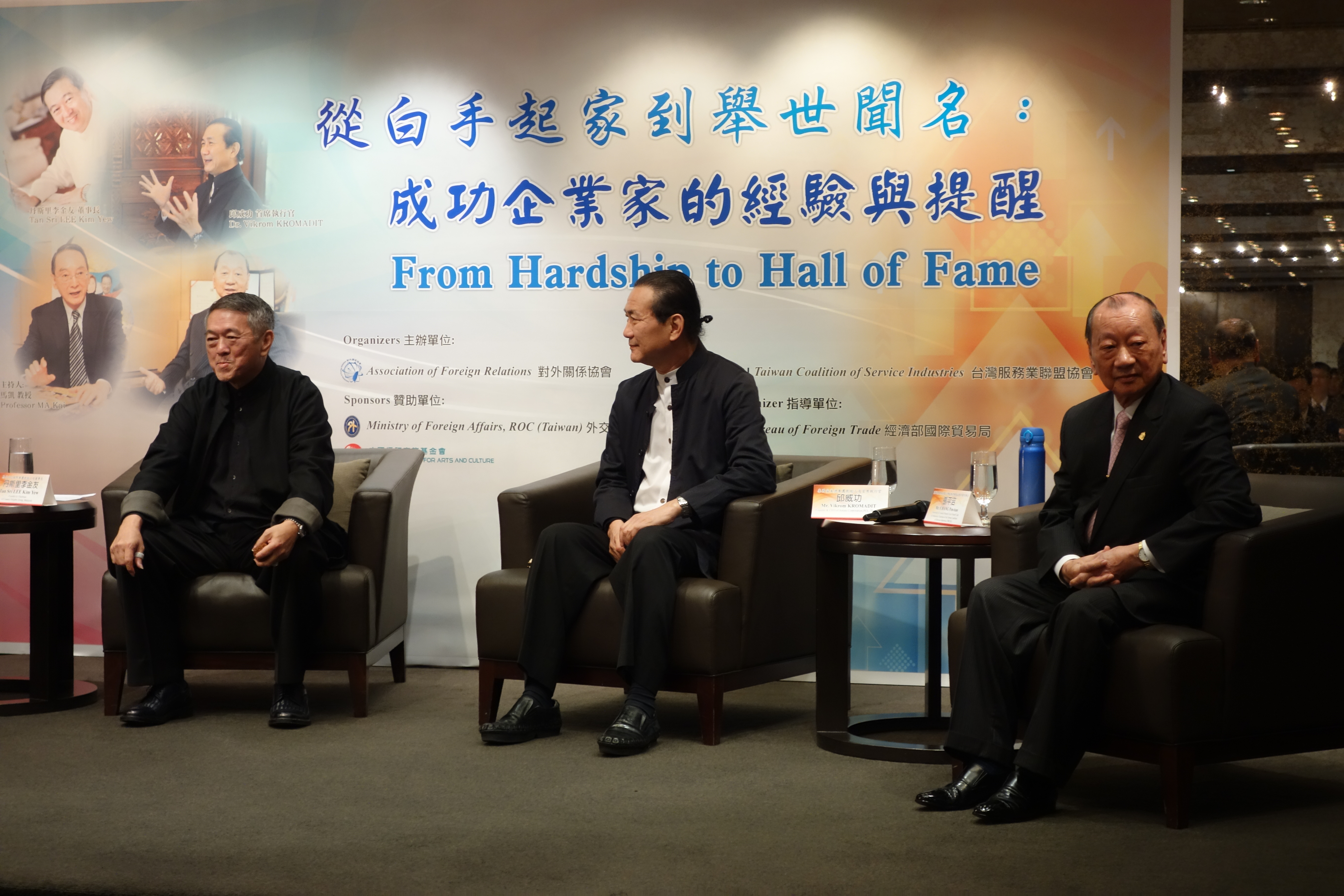 這樣的童話故事,在馬來西亞綠野集團創辦人兼董事長李金友、泰國安美德集團創辦人兼董事長邱威功、台灣服務業聯盟協會榮譽理事長張平沼身上體現了。台灣服務業聯盟協會與對外關係協會11月20日舉辦的「從白手起家到舉世聞名:成功企業家的經驗與提醒」座談會聚集了這三位白手起家、實現童話的成功企業家,並邀請到前副總統蕭萬長先生與前外交部長歐鴻鍊大使擔任致詞貴賓。