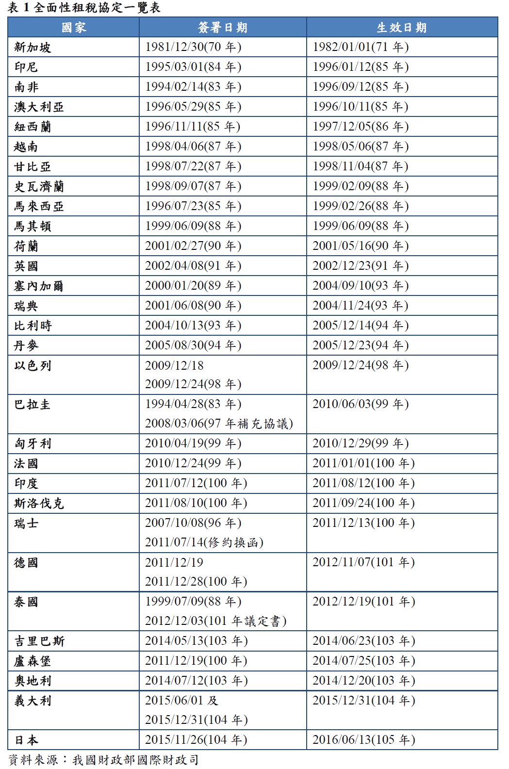 2. 另我國與日本租稅協定業於105年6月13日生效,自106年1月1日適用。
