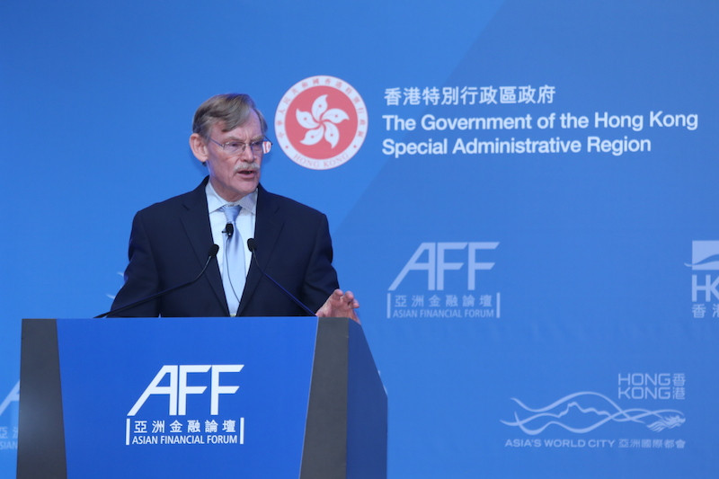 由香港特別行政區政府及香港貿易發展局(香港貿發局)主辦的第 12 屆亞洲金融論壇於1月14至15日於香港召開。今屆論壇以「共建可持續與共融的未來」為主題,吸引超過 3,300 名環球財金界舉足輕重的官員、商界領袖、金融翹楚及投資者匯聚香港,除了剖析最新環球經濟局勢外,亦透 過現場投票,了解業界對環球經濟的看法,並且拆解科技和創新帶來的投資機會及風險。今年論壇的主題為「共建可持續與共融的未來」。行政長官林鄭月娥在論壇致開幕辭時,重點介紹香港在金融服務業的優勢及取得的成就,並指出這些都能突顯佔香港二零一七年本地生產總值約百分之十九的金融業,對香港經濟發展扮演重要角色。今年的論壇亦新增了四場專題討論環節,並邀請著名的企業家、金融監管機構代表及學者擔任主持,與來自銀行及金融服務界、初創企業、金融科技及保險公司的領袖和專家,深入討論涵蓋初創企業、金融創新、以及「一帶一路」基礎建設項目的風險管理等熱門議題。