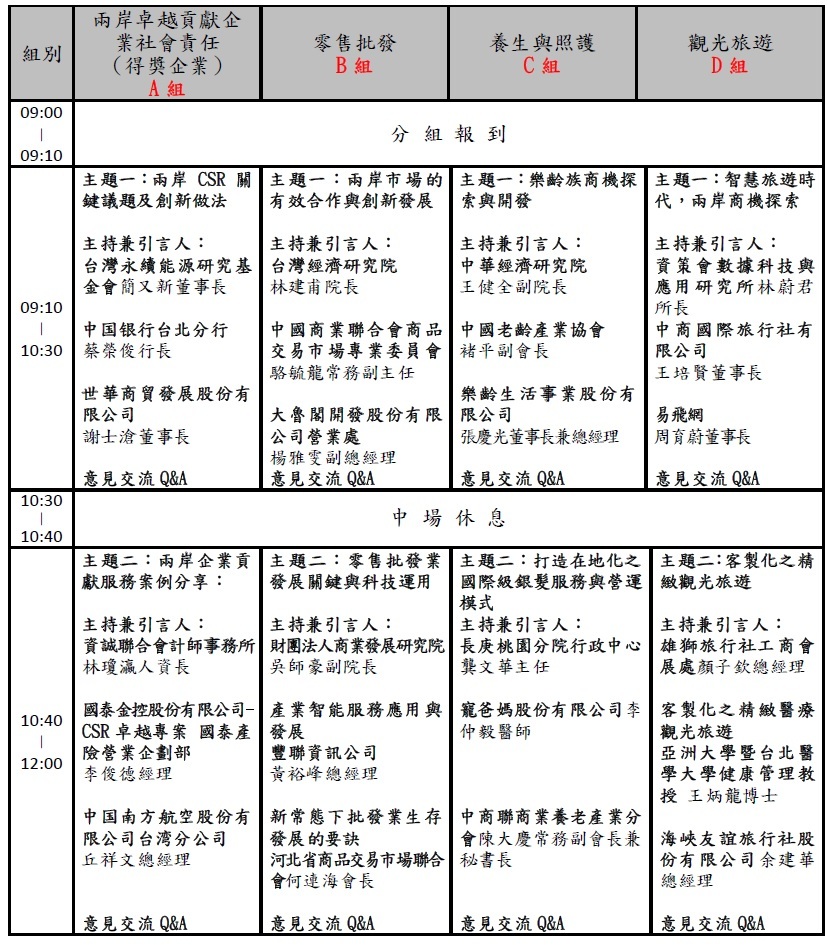 二、【海峽兩岸服務業論壇-分組論壇(四組)】