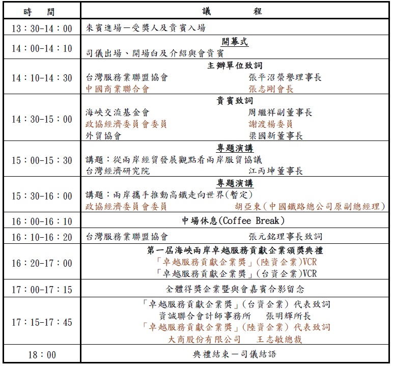 - 主辦單位:台灣服務業聯盟協會、中國商業聯合會