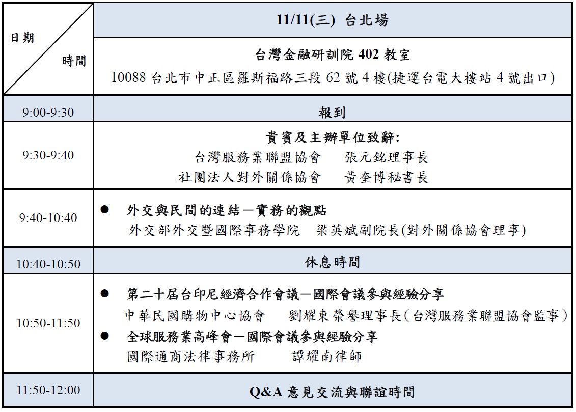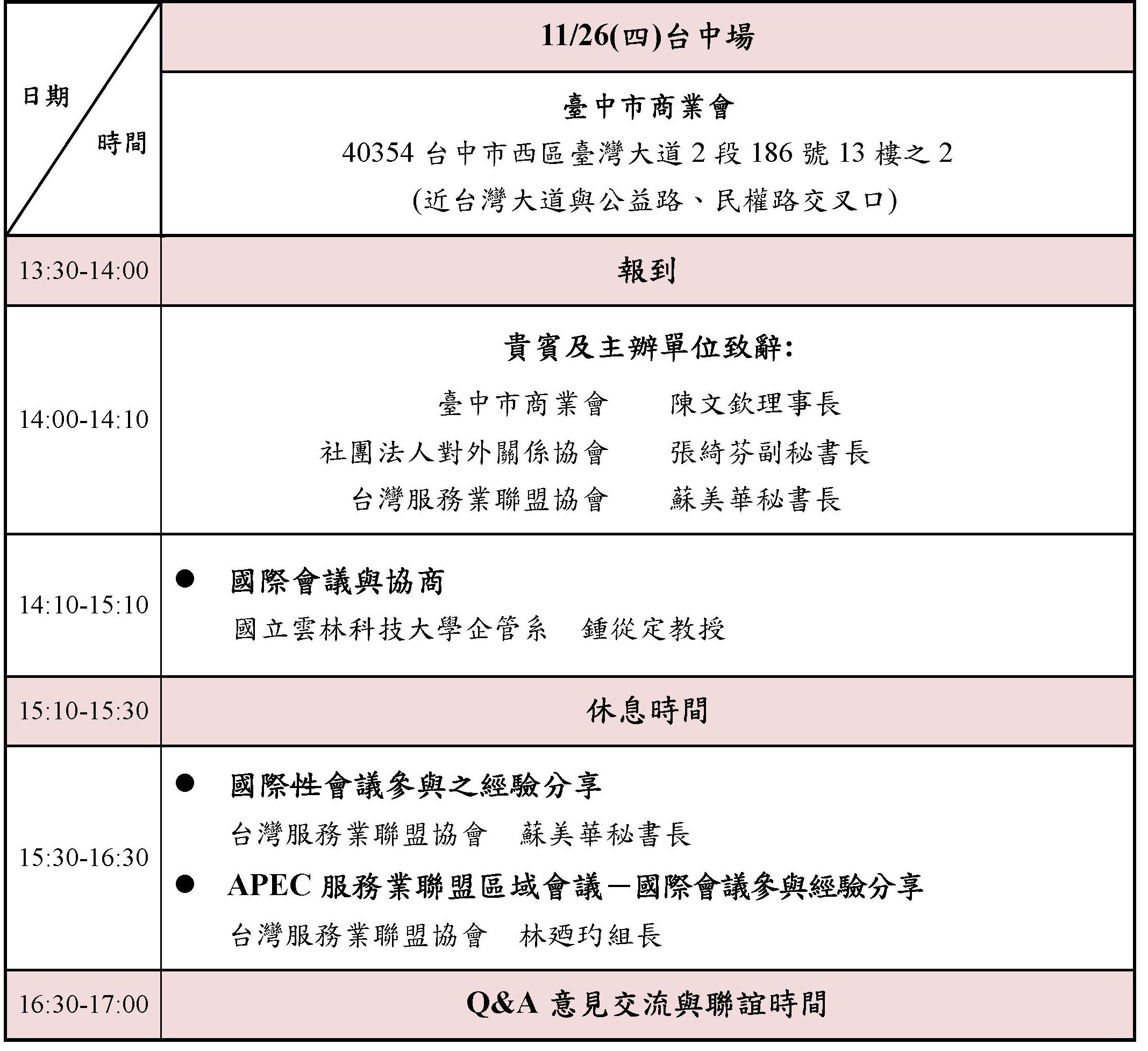 主辦單位:台灣服務業聯盟協會、社團法人對外關係協會、臺中市商業會