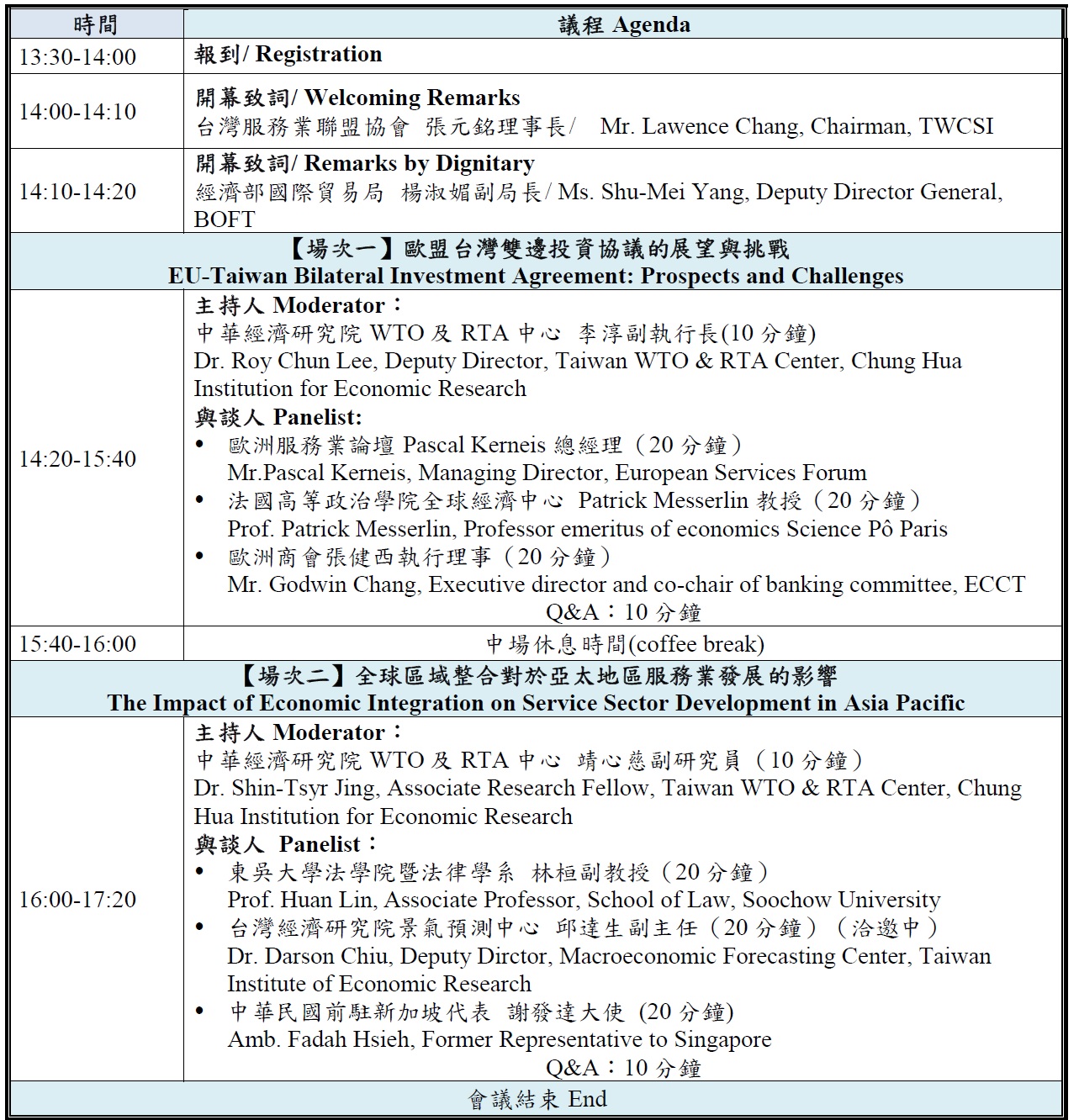 主辦單位 : 台灣服務業聯盟協會、中華經濟研究院WTO及RTA中心