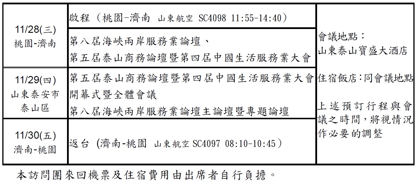 相關行程如下,本案聯絡人李小姐,電話:(02)2735-0056分機667。有意參加者請盡速與本會連絡報名。