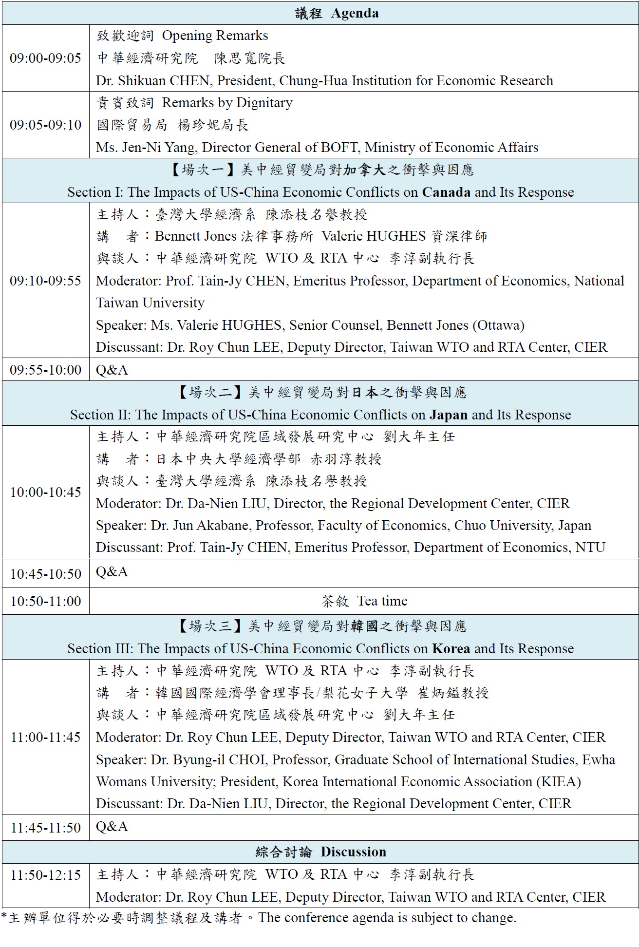 美中貿易戰自2018年延燒迄今仍未止歇,甚至有擴大之趨勢。亞太國家均受波及,其中我國及日、韓貿易表現受影響最為直接,成為亞洲經濟成長之重大變數。同時處於太平洋彼岸的加拿大在去年雖與美國及墨西哥完成美墨加協議(USMCA)簽署,但仍受美國新經貿政策方向之影響。美、中為日、韓、加及臺灣最重要的經濟及科技夥伴,且貿易均為經濟成長之重要動能來源。面對美中經貿衝突多領域、長期化的發展趨勢下,各國雖然挑戰不同,但如何面對此一變局?如何化危機為轉機?都有許多值得彼此借鏡相互學習之處。為增進社會大眾了解美中經貿變局下亞太國家之影響與因應,本會特與中經院WTO及RTA中心辦理本研討會,邀請加拿大、日、韓專家學者深入剖析,提供專業觀點與精闢分析。