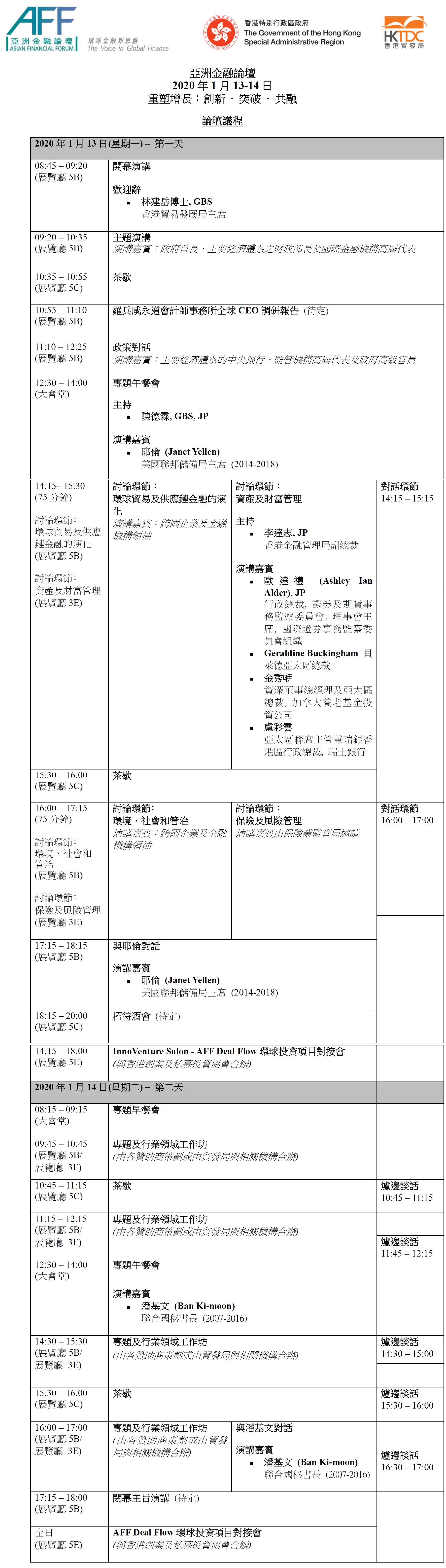 2020「亞洲金融論壇」(2020年1月13-14日‧香港)