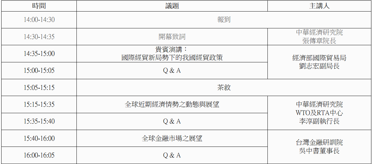 主辦機構:中華經濟研究院WTO及RTA中心、中華民國全國工業總會、台灣服務業聯盟協會