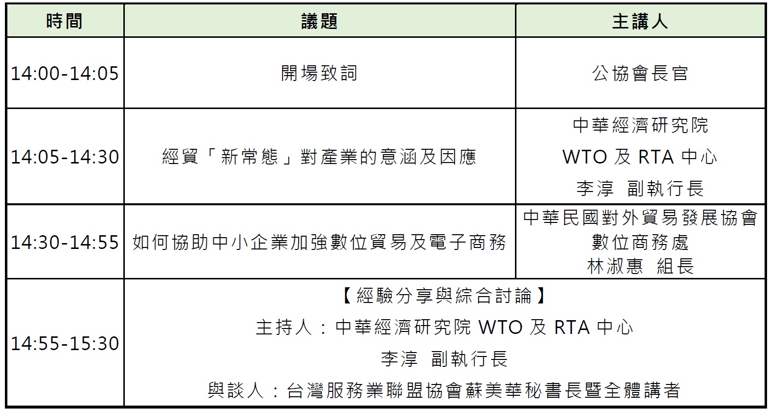 主辦機構:中華經濟研究院WTO及RTA中心、全國工業總會、台灣服務業聯盟協會