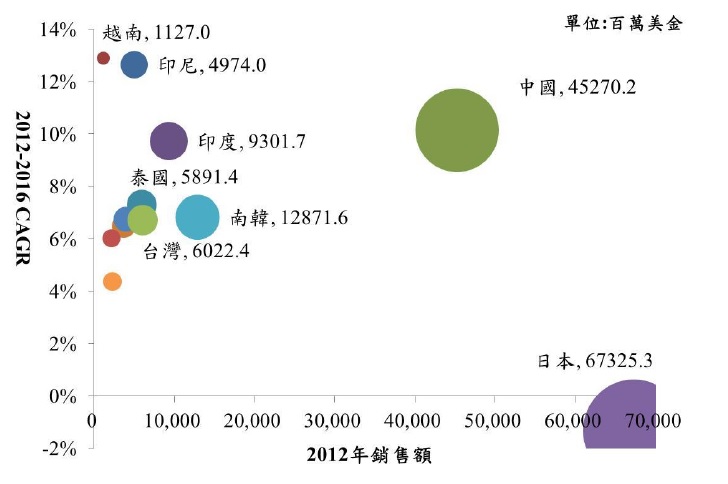 圖1 2012年亞太地區健康美麗銷售趨勢