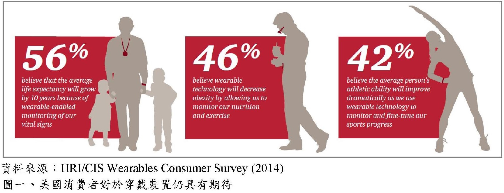 PwC針對全美至少1,000名使用者進行健康穿戴式裝置的消費者調查,結果顯示有56%的消費者深信透過使用穿戴裝置進行生命徵象(Vital signs)監測將可以延長壽命;46%的消費者深信透過穿戴裝置進行運動與飲食監測,將可望有效降低肥胖;42%的消費者認為透過使用穿戴裝置進行運動過程的監測以及後續的指引與調整,將可改善與增加自身的運動能力。然而,消費者對於穿戴裝置雖然具有蠻高的期待,但目前市場現況卻沒有這麼理想,根據PwC於2014年的調查指出,僅有1/5的美國消費者擁有穿戴裝置,但當中卻僅有10%的消費者會每天配戴,中間究竟出現了什麼問題?