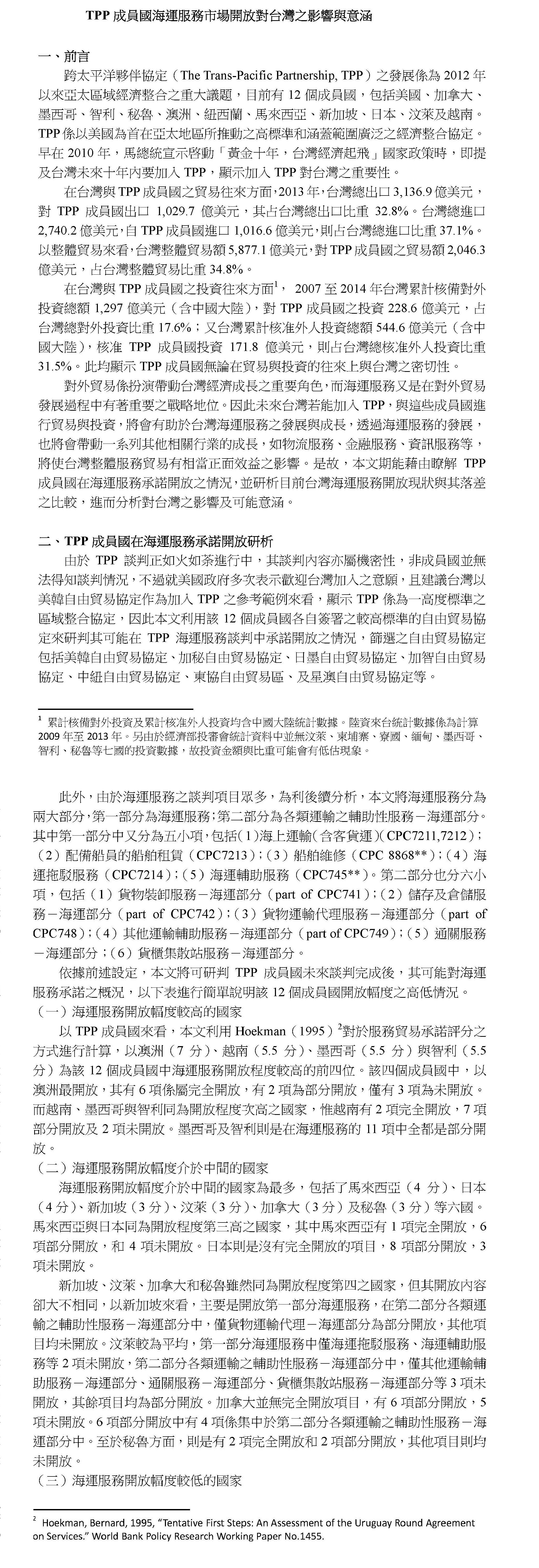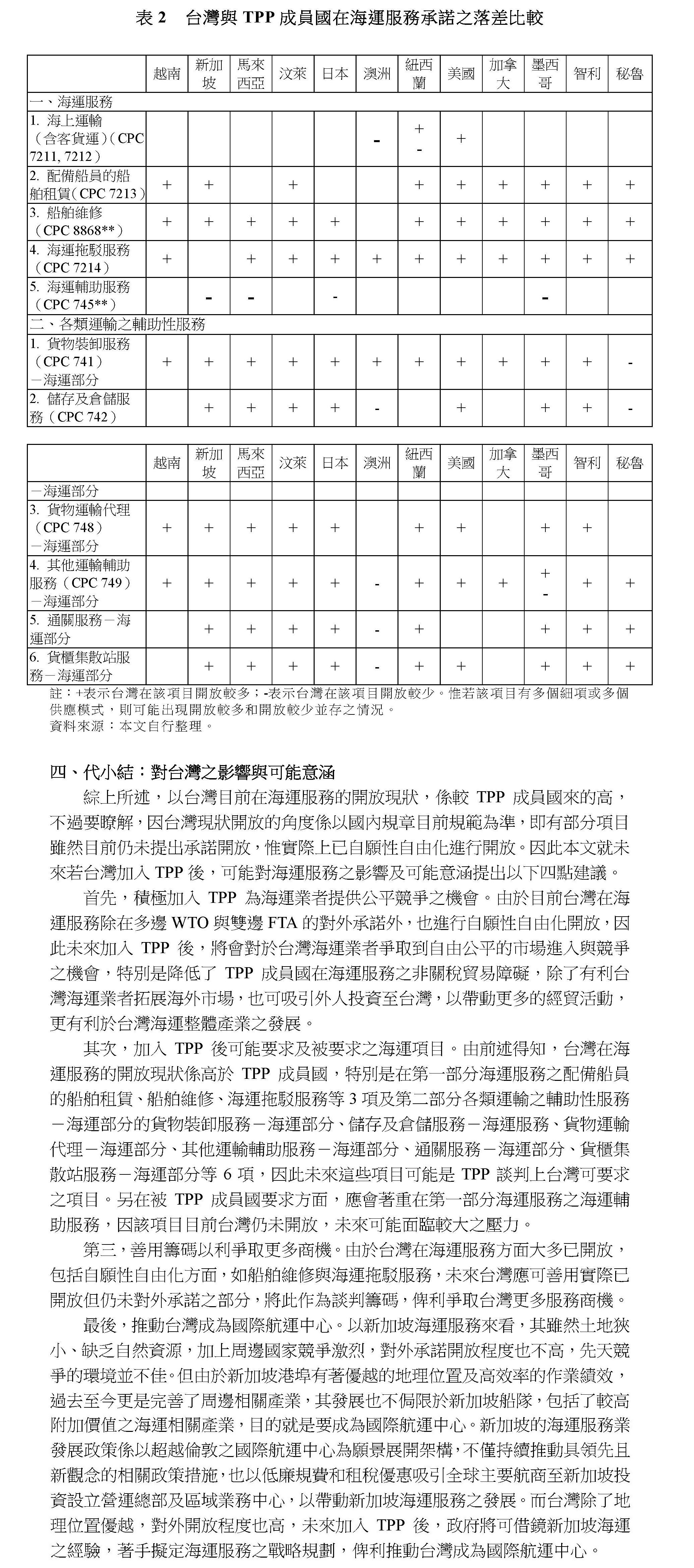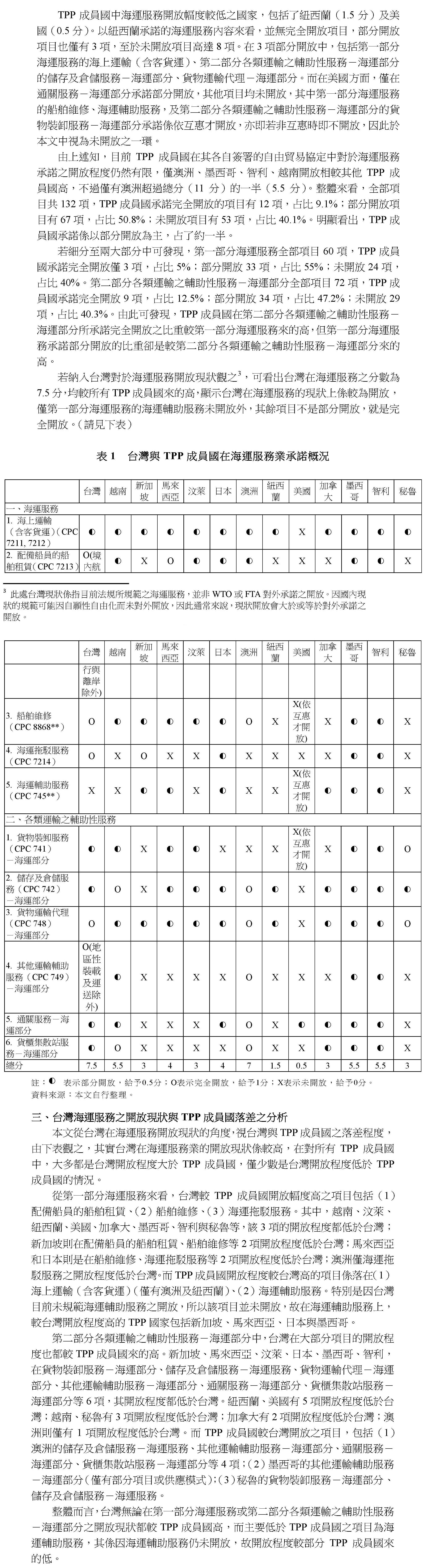 TPP成員國海運服務市場開放對台灣之影響與意涵