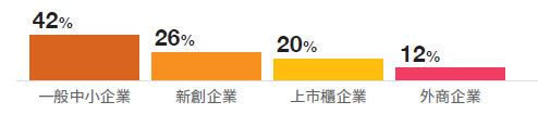 繼去年對新創國際化發展的專題調查,今年度針對「企業合作」進行調查,了解新創企業完成研發進入商業市場的初期,如何透過小型、帶有驗證性質的合作專案,累積知名度並站穩腳跟。受調新創有58%已有企業合作的經驗,合作對象以一般中小企業(42%)最多、新創企業(26%)其次、上市櫃企業(20%)居第三,顯示新創企業本身的產品技術成熟度,距離成為大型企業的合作對象或供應商,可能還有一段距離 (圖3) 。